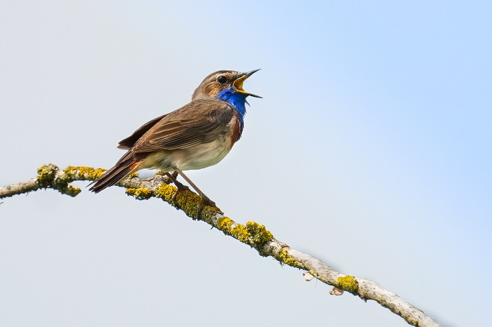 Die Vögelchen sind 13 bis 14 cm groß und wiegen um die 18 g. Es handelt sich nicht nur um recht zierliche Tiere, sie sind auch nicht ganz einfach zu entdecken. Möchte man sich auf die Suche nach ihnen begeben, sollte man auf jeden Fall in den Sommermonaten nach ihnen Ausschau halten, denn es handelt sich um Zugvögel, die den Winter in wärmeren Regionen verbringen. Bei uns in Deutschland bewohnen Blaukehlchen Schilfgebiete an Gewässern, Mooren oder Gräben. Im Frühjahr singen die Männchen ihre Lieder oft von Singwarten aus, die meistens einzelne Büsche oder niedrige Bäume darstellen. Bei uns in Deutschland kommen Blaukehlchen am häufigsten im Nordwesten vor.